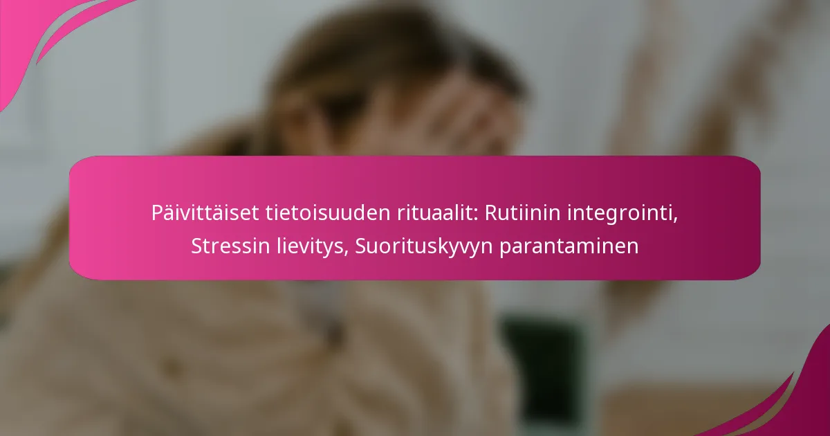 Keskittymistekniikoiden toteuttaminen työskentelyrutiinissasi voi merkittävästi parantaa tuottavuutta ja vähentää stressiä. Omaksumalla rakenteellisia menetelmiä, kuten Pomodoro-tekniikkaa, ja integroimalla mindfulness-käytäntöjä voit luoda tehokkaamman ja vähemmän häiritsevän työympäristön.