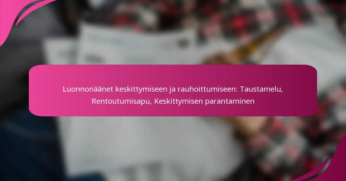 Luonnon äänet, kuten lempeä sade, meren aallot tai rauhoittava lintujen laulu, luovat ympäristön taustamusiikin, joka voi parantaa keskittymistä ja edistää rauhoittavaa tunnelmaa. Sisällyttämällä nämä...