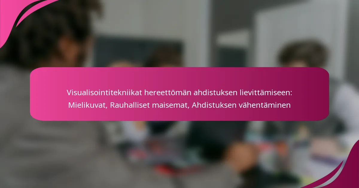 Visualisointitekniikat hereillä olevan ahdistuksen lievittämiseksi hyödyntävät mielikuvitusta rauhoittavien kohtien herättämiseksi, mikä auttaa lievittämään ahdistusta. Sitoutumalla mieleen positiivis...
